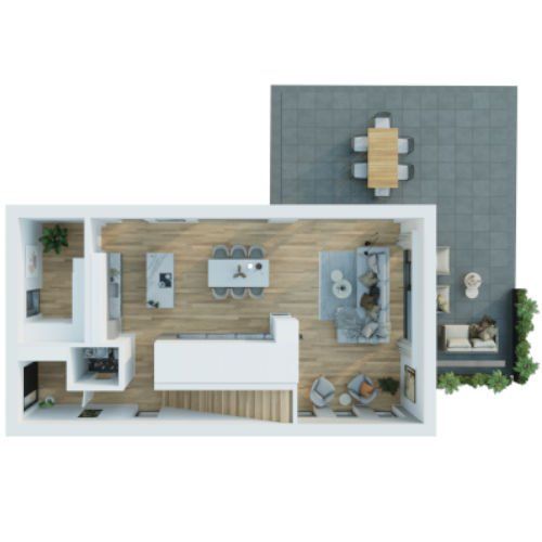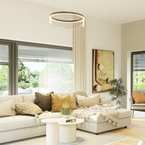 *Haus, Innenräume und Außenanlage sind computergenerierte 3D-Renderings und keine realen Bilder. Abweichungen vorbehalten. Das gezeigte Grundstück und Haus bzw. die eingezeichneten Einrichtungsgegenstände, dienen lediglich dem Nachweis der Stellmöglichkeit. Zum Zwecke des technischen Fortschritts oder aus konstruktiven Notwendigkeiten heraus müssen wir uns vorbehalten, jederzeit am hier beschriebenen Standard gleichwertige Änderungen vorzunehmen.