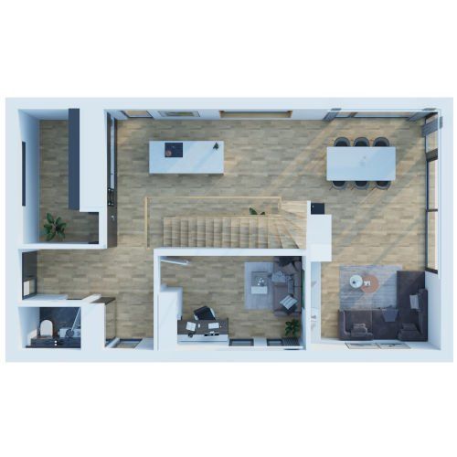 *Haus, Innenräume und Außenanlage sind computergenerierte 3D-Renderings und keine realen Bilder. Abweichungen vorbehalten. Das gezeigte Grundstück und Haus bzw. die eingezeichneten Einrichtungsgegenstände, dienen lediglich dem Nachweis der Stellmöglichkeit. Zum Zwecke des technischen Fortschritts oder aus konstruktiven Notwendigkeiten heraus müssen wir uns vorbehalten, jederzeit am hier beschriebenen Standard gleichwertige Änderungen vorzunehmen.
